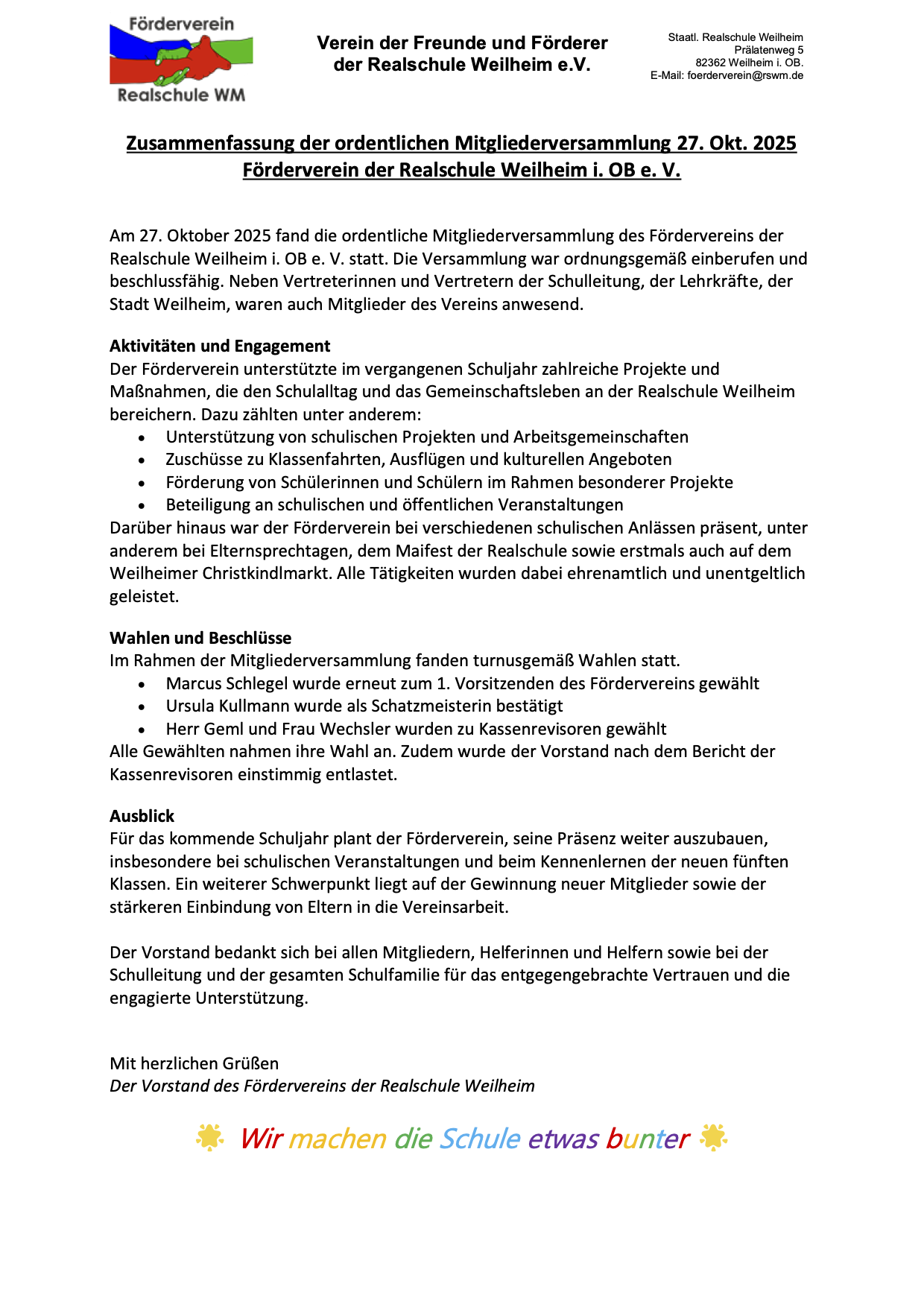 Adresse:Verein der Freunde und Förderer der Realschule Weilheim e.V. |